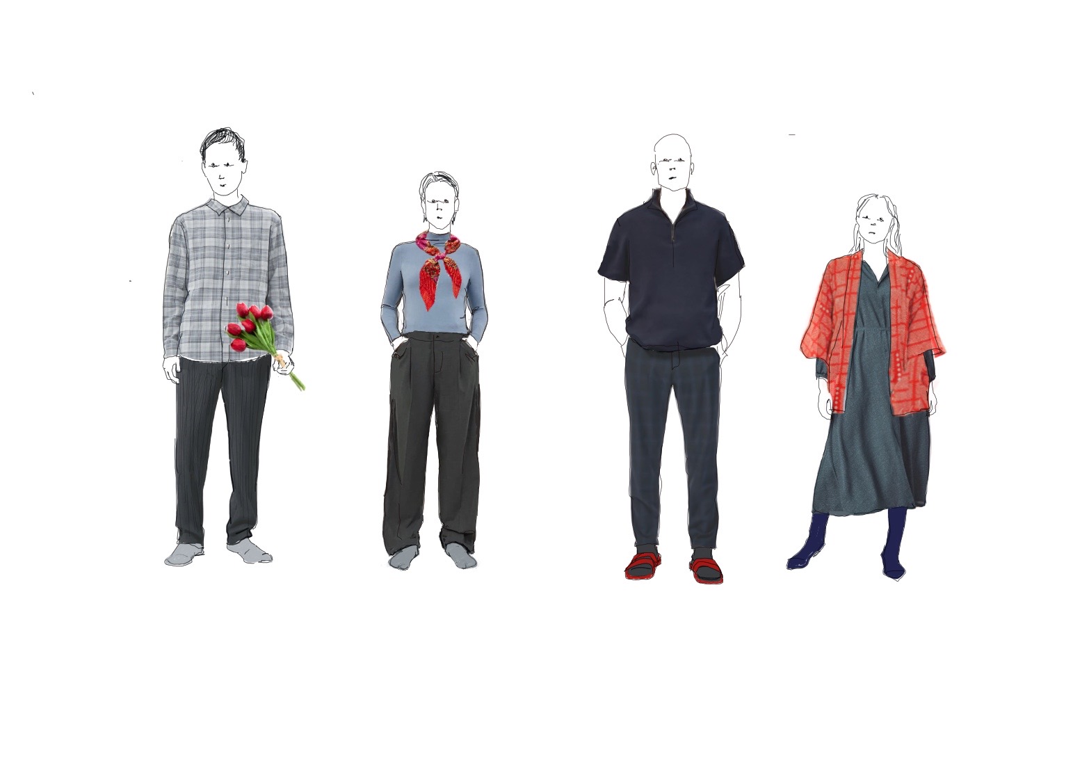 En föreställning i två akter, fritt efter ”Mordängeln” av Luis Buñuel. Skådespelarna får sina repliker och anvisningar i realtid via en öronsnäcka. Skådespelaren blir helt utbytbar, vilket ställer krav på flexibilitet i kostymens utformning. Det fick jag testa att genomföra på två helt skilda sätt till föreställningens två, sinsemellan mycket olika, akter.